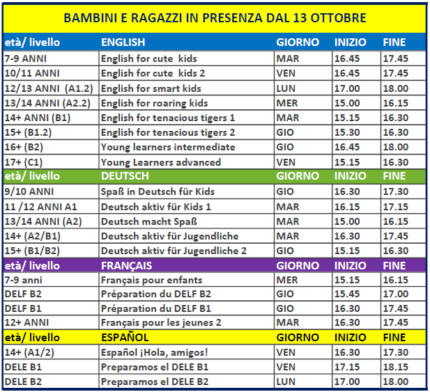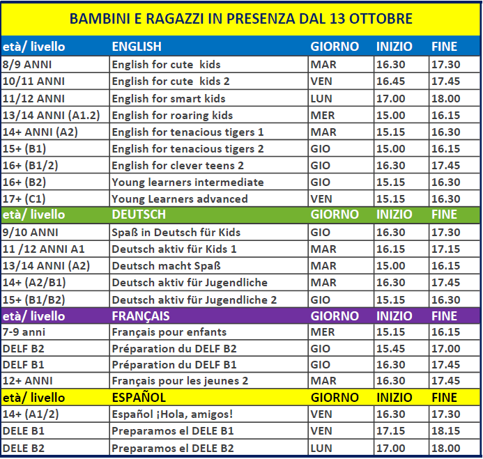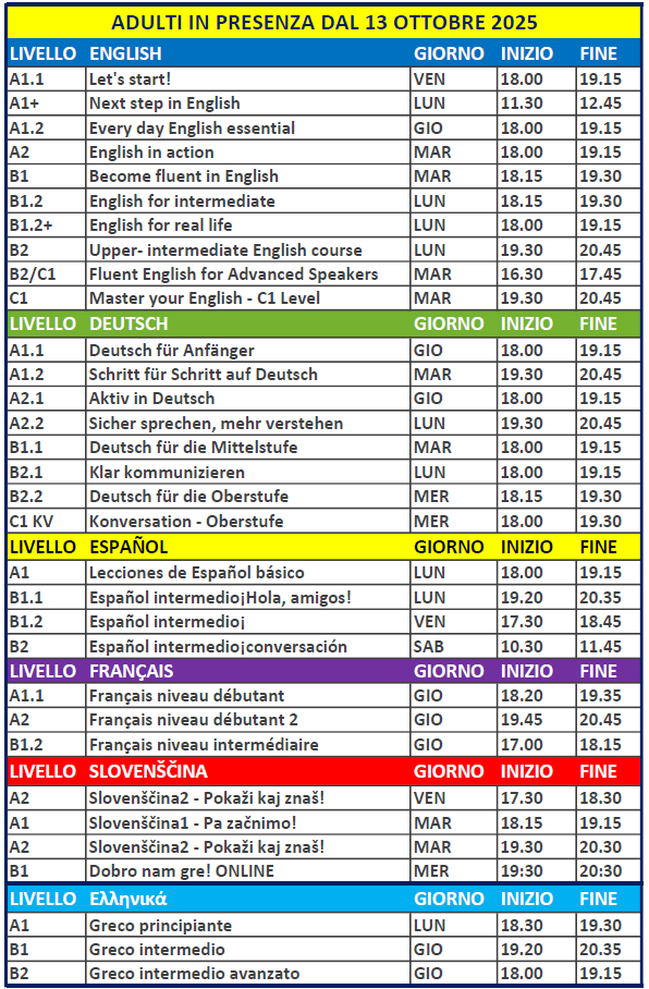 vi presentiamo la nostra proposta d'orario per i corsi che partiranno dal 13 ottobre 2025: